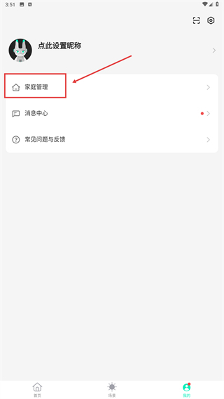 在【我的】页面,点击【家庭管理】选项,即可进入家庭相关功能的操作界面。