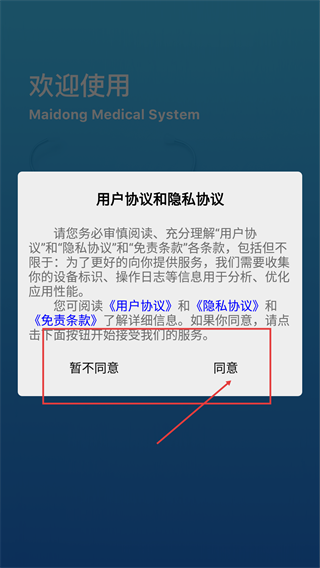 进入软件后会弹出【用户协议和隐私协议】的弹窗,阅读相关条款后点击【同意】按钮,才能继续进行后续的操作环节。