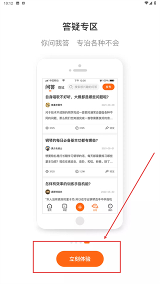 进入页面后,点击【立刻体验】功能按钮,即可进入艺音在线主界面。