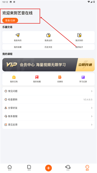 在艺音在线的界面上,找到并点击【登录/注册】按钮,即可进入与登录相关的页面。