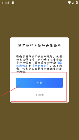 当弹出用户协议与隐私政策的提示后,需要仔细阅读《隐私条约》和《用户协议》,点击【同意】按钮就能继续使用相关产品与服务。