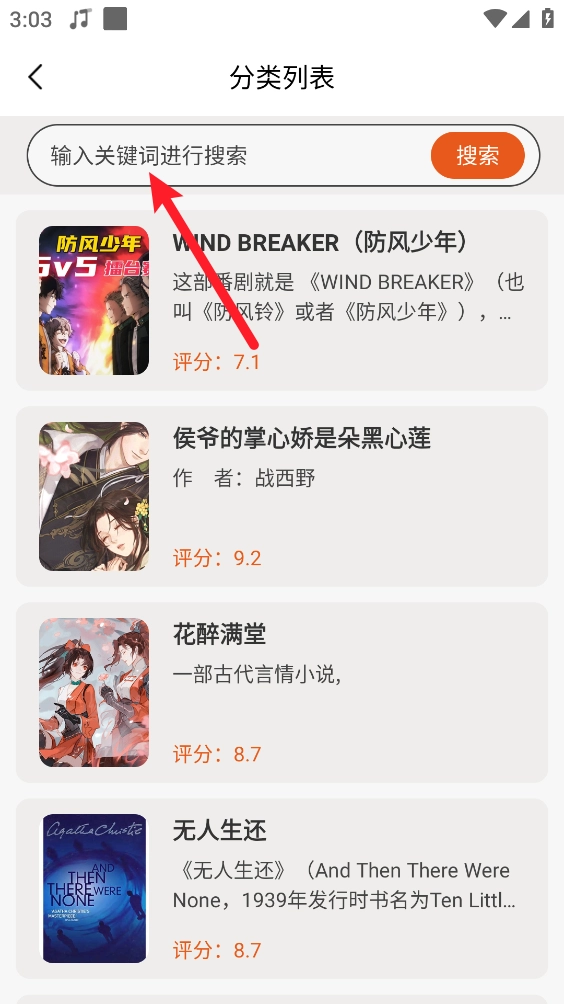 3、支持输入关键字或书名选择喜欢的小说。