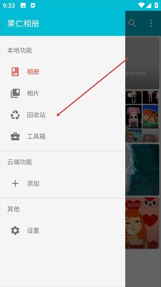 2、在展开的功能侧边栏里,找到并点击【回收站】选项,即可进入回收站页面。