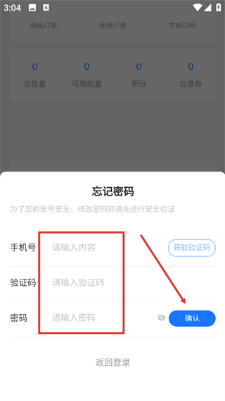 在密码找回页面,按顺序填写手机号码、获取并输入验证码、设置新密码,之后点击“确认”按钮即可完成密码重置操作。