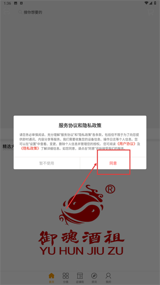 当弹出【服务协议和隐私政策】窗口后,请点击【同意】按钮,确认接受相关条款,以便继续使用平台提供的服务。