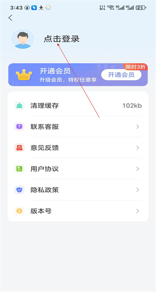 进入个人页面后,能看到“登录”选项以及各类功能入口,点击该“登录”选项,即可进入登录方式选择页面。