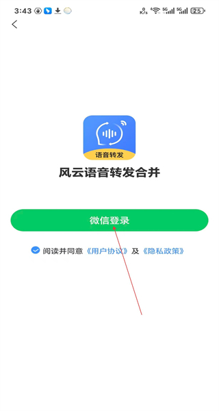 进入登录界面后,先勾选对应的协议条款,接着选择微信作为登录途径,最后完成账号的登录流程。