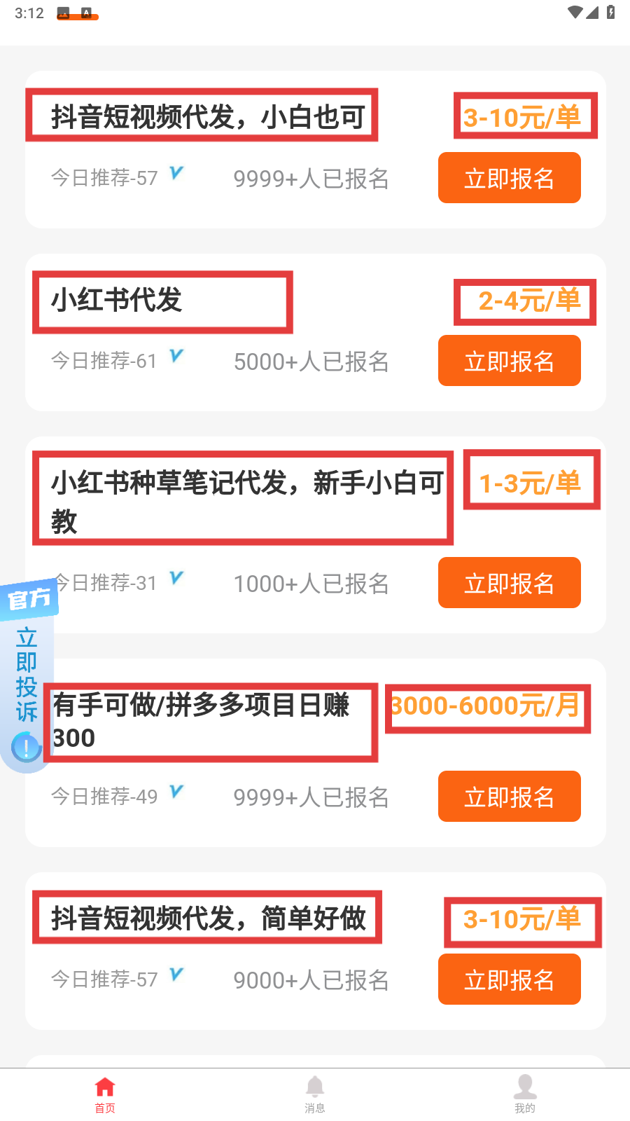 是一款创新型线上任务平台,面向求职者提供多元化兼职机会。平台通过实时更新任务库与智能匹配系统,帮助用户快速获取高匹配度工作机会。所有任务均设置透明化收益标准,完成任务后报酬即时到账,支持在线实时沟通与进度查询。平台涵盖电商推广、内容创作、数据标注等主流领域,配备实名认证机制与用户评价体系,确保任务真实可靠,让零工经济更高效透明。可选择【抖音短视频代发】【小红书代发】【小红书种草笔记代发】【有手可做/拼多多项目】等兼职岗位,根据自身需求点击【立即报名】按钮即可参与。