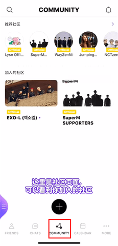2、注册完成后,点击“社区”。