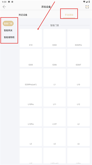 在添加设备的页面中,挑选设备类型(例如【智能门锁】)后,能够借助【手动添加】这一选项,自行填写设备的相关信息。