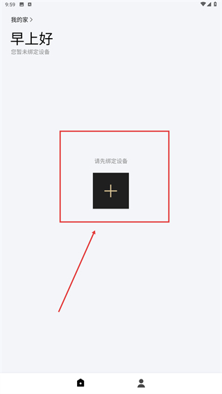进入“我的家”界面后,点击【请先绑定设备】区域的加号按钮,即可启动设备绑定流程,从而关联智能设备。