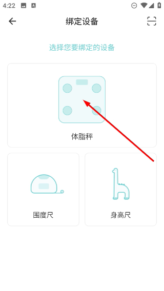 4、进入【绑定设备】页面后,挑选想要绑定的目标设备(例如【体脂秤】),就能启动该设备对应的绑定流程。