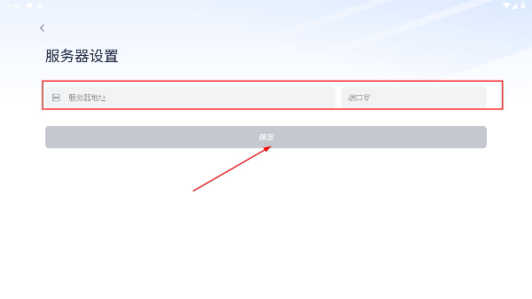 3、进入服务器设置页后,在对应输入框填写服务器地址,确认信息后点击【确定】完成设置。