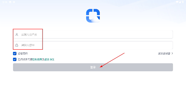 2、进入登录界面后,依次填写用户名与密码,确认协议勾选状态,点击【登录】按钮尝试登录。