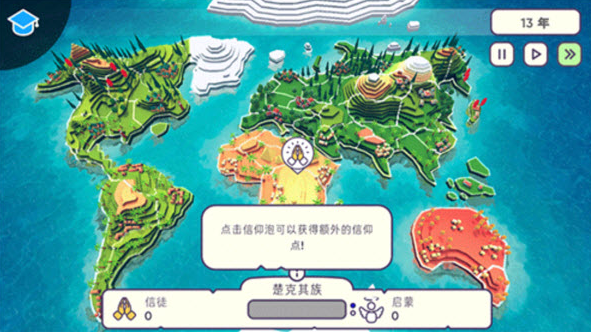 2. 信仰积累:点击游戏中出现的图标即可解锁奖励,收获额外信仰点,为宗教发展奠定基础;