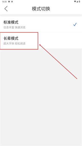 在模式切换页面,选择【长辈模式】,系统将切换至超大字体的界面样式,让内容阅读更轻松便捷。