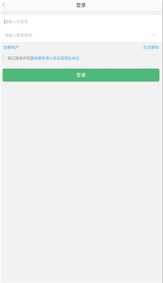 打开快服务骑士版,通过手机号进行注册或登录。