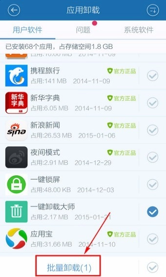 找到并勾选需要卸载的软件,也可批量勾选。