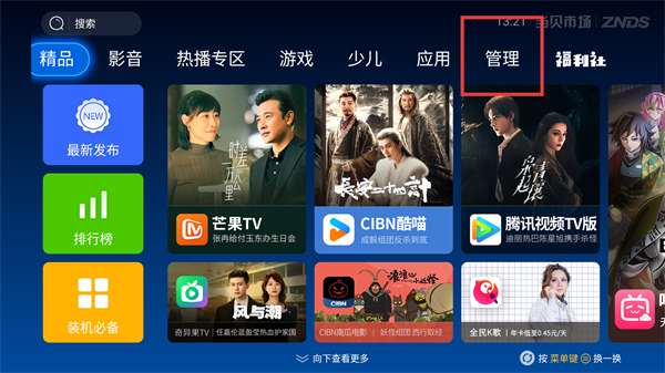 1、在主界面点击顶部的【管理】选项,即可进入管理功能页面,找到各类设备管理相关的工具。