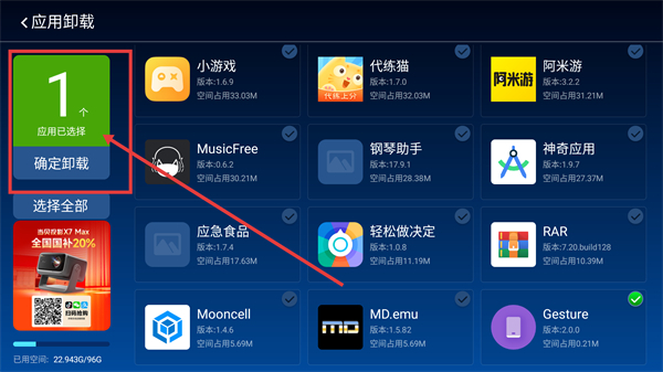3、在应用卸载界面勾选需要卸载的应用后,点击左侧的【确定卸载】按钮,即可触发卸载确认弹窗。