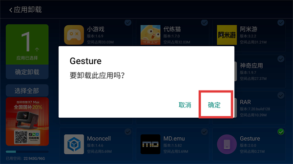 4、当弹出【Gesture】的卸载确认框时,点击其中的【确定】按钮,即可完成该应用的卸载流程。