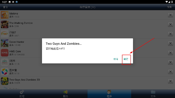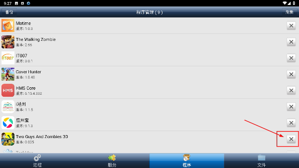 2、进入【程序】页面后,选择要进行操作的项目,点击该项目右侧的叉形按钮,即可启动相应的操作流程。