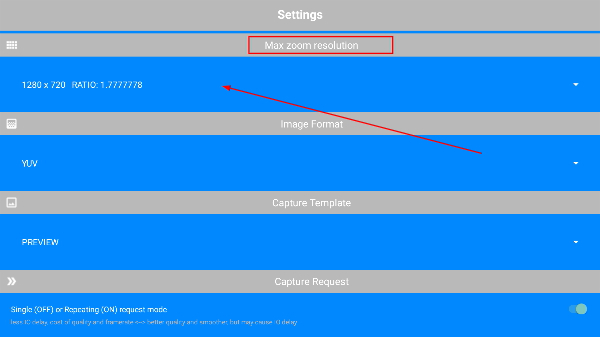 2、进入“Settings”页面后,找到【Maxzoomresolution】选项,点击进入它的参数选择界面。