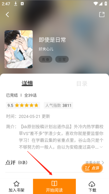 4、找到想看的漫画后直接点开,再点击“开始阅读”按钮就能立即阅读了。