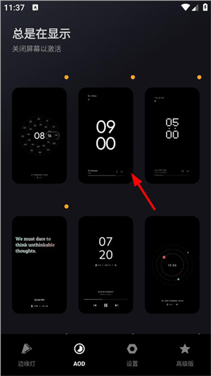 6、完成边缘灯设置后,当用户开启AOD功能,即可在对应页面挑选自己偏好的屏幕显示样式。