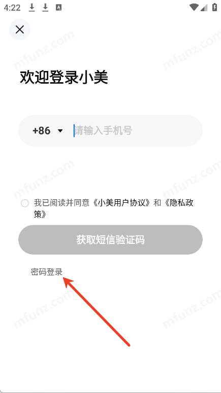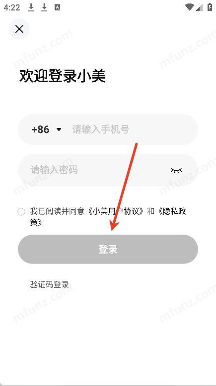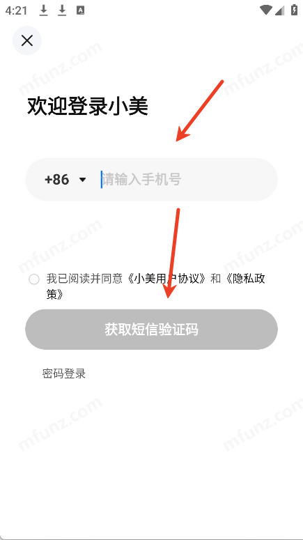 输入手机号码与密码后点击登录即可(首次登录会自动注册新账号)