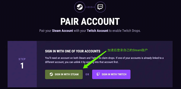 如果当前界面并非如此,你可以跳过这一步,继续查看下方的操作步骤;要是登录Steam后显示的是这个界面,那么你就可以选择通过Twitch进行登录。