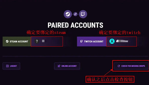 3、当掉宝奖励发放至账号的掉宝背包后,还需完成一个关键步骤——把游戏账户和自己的Twitch账号进行关联。