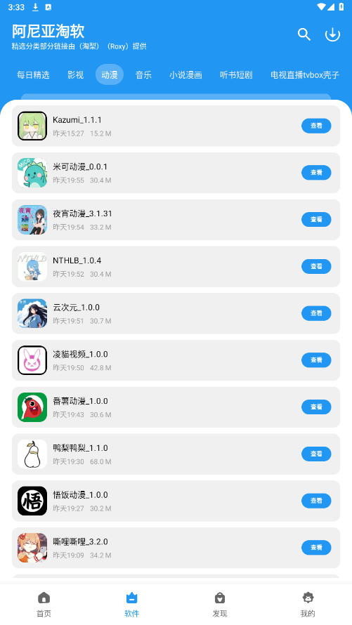 3. 在软件页面可以看到各类资源的推荐,如动漫等。