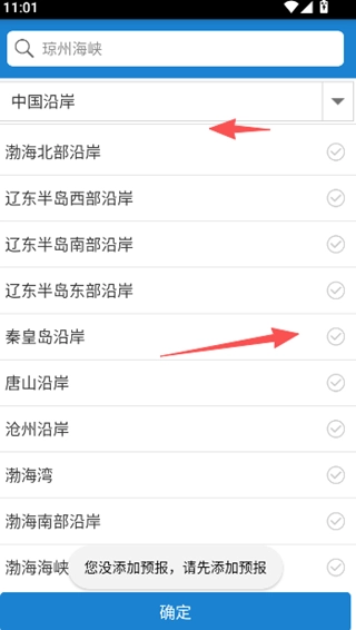 3、在搜索后的界面能看到不同区域的气象预报列表,包含中国沿岸中国近海等选项,这些预报均由中央气象台提供,每个选项旁标注了对应的更新时间便于选择查看。