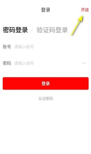 打开后,在登录界面,点击右上角的【开店】。