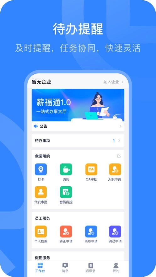 工作台、通讯录、人事服务等体验提升