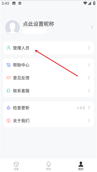 在【我的】页面找到【管理人员】选项并点击,进入人员管理界面后,就能对系统内的人员开展添加或配置等操作。