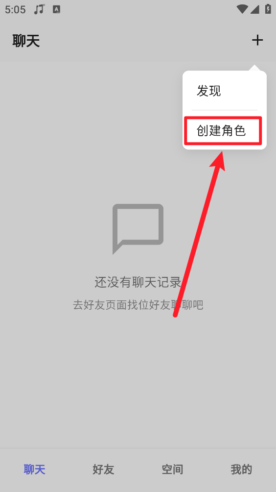 2、进入聊天界面点击右上角"+"号。
