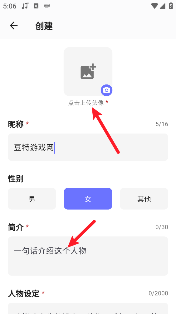 4、在创建页面上传图像、输入名称、简介等。