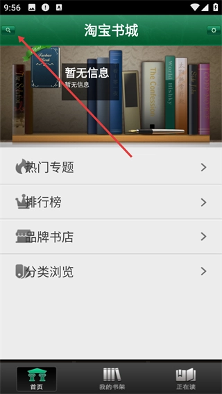 在淘宝书城首页点击左上角的搜索图标,就能进入图书搜索页面,进而查找想要的书籍。