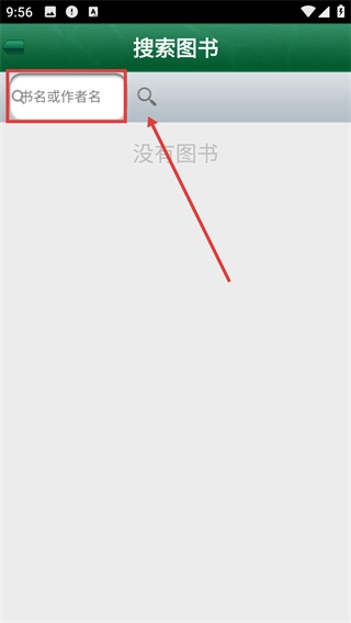 在图书搜索页面,点击搜索框以激活输入状态,输入书名或作者名即可检索相关图书。