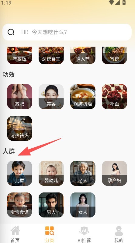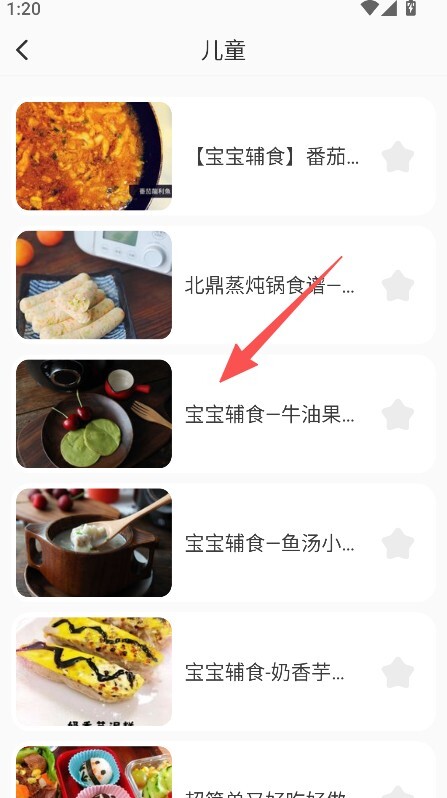 3、进入儿童分类页面,查看对应的菜谱列表内容。