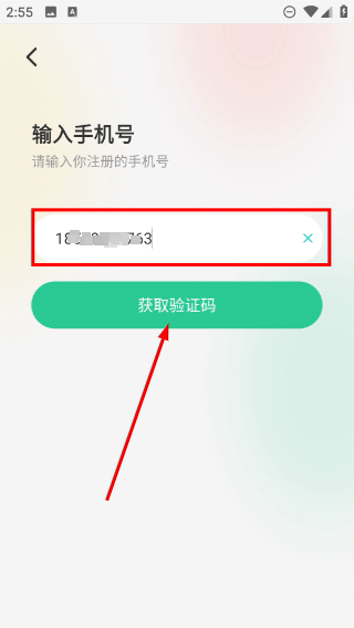 3、进入密码找回的手机号输入页面,确认已填写的手机号无误后,点击【获取验证码】按钮来获取验证信息。