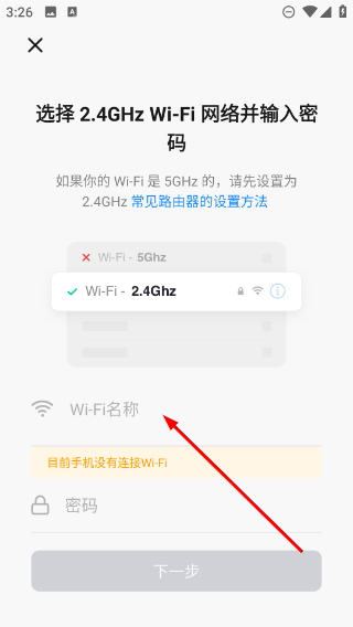 4、进入Wi-Fi选择界面后,选中【2.4GHz-Wi-Fi】,随后填写网络相关信息,就能完成设备的网络配置步骤。