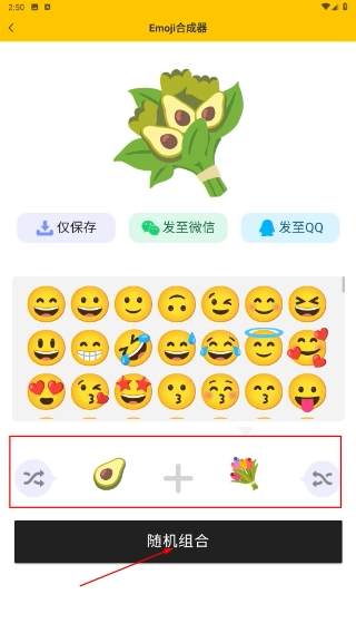 3、点击“随机组合”按钮后,系统会自动对不同的Emoji元素进行匹配,进而生成全新的组合形象。