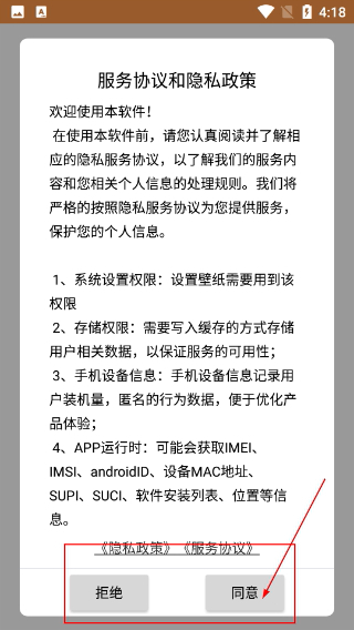 1、在使用本软件之前,请务必仔细阅读【服务协议与隐私政策】,同时了解系统设置中关于存储等权限的相关说明。确认无误后,点击【同意】按钮,即可进入软件并使用其各项功能。