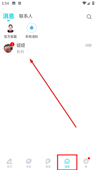 4、发送消息后,切换至“消息”页面,就能在消息列表里查看和该对象的聊天记录。