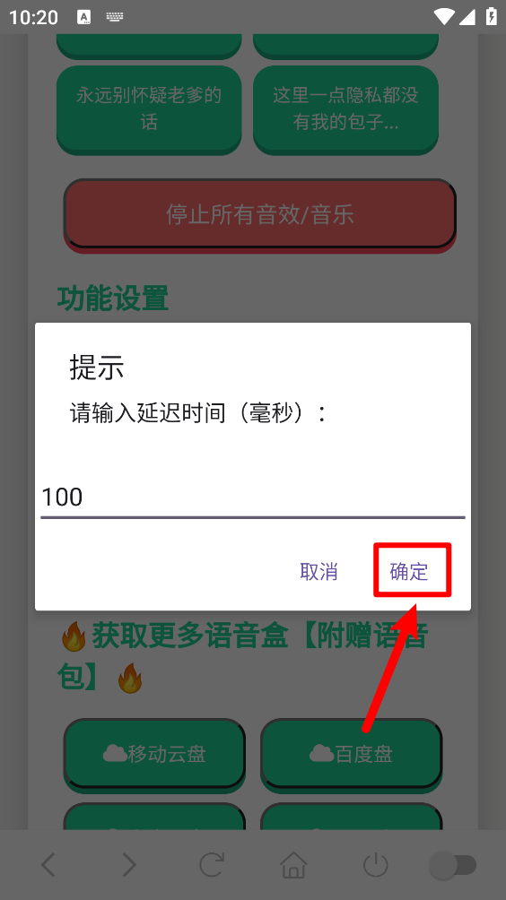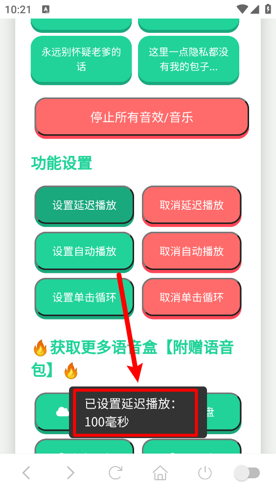 点击"设置延迟播放"按钮,设置延迟时间(毫秒)。