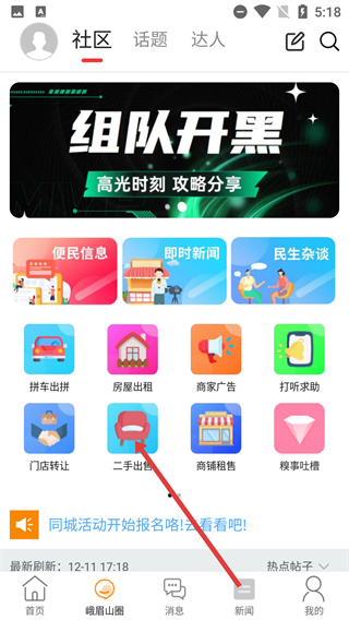 在社区页面里,点击【二手出售】的功能入口,就能进入对应的二手交易信息展示页面查看相关内容。