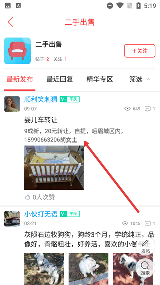 在二手交易的出售页面里,找到你想了解的目标帖子(比如标题为【婴儿车转让】的帖子),点击进入这个帖子的详情页面,就能查看里面的具体信息了。